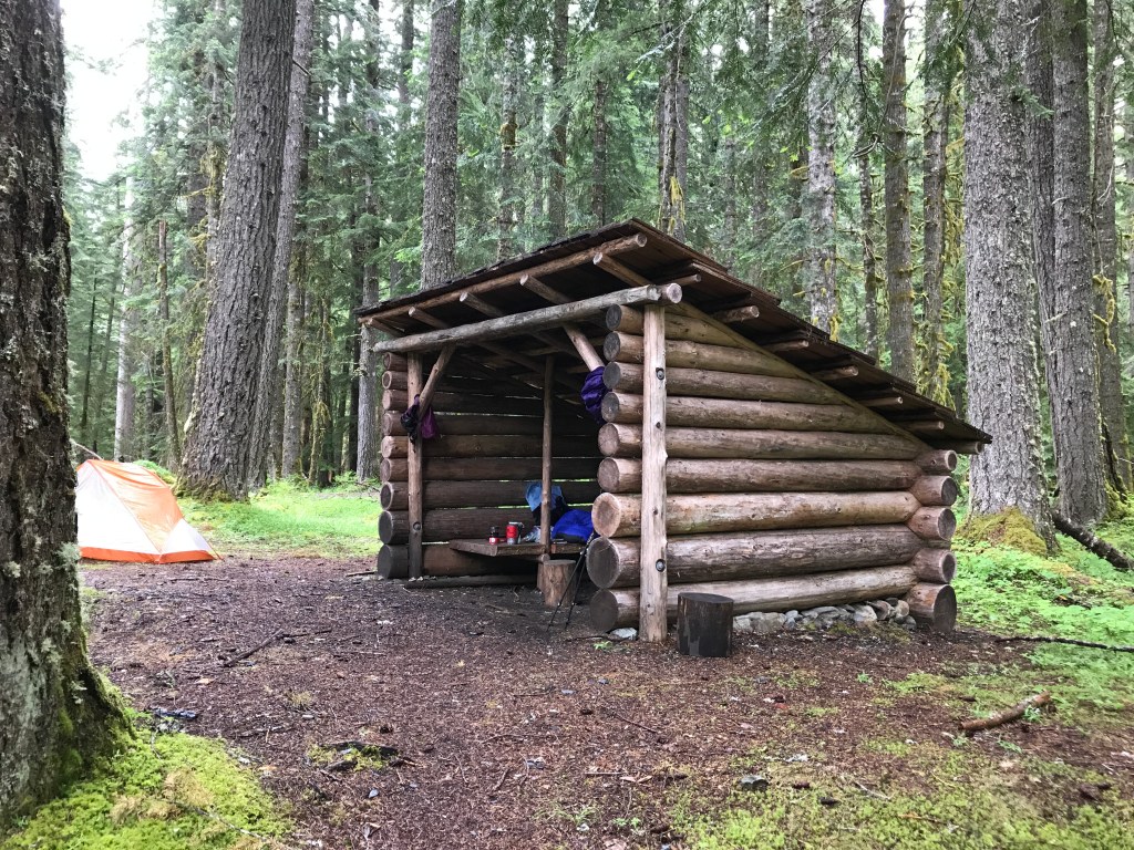 On that first solo trip I left Camp Pleasant and crossed the First Divide the next day, descending to another well named site, Home Sweet Home Basin. A sturdy shelter sat in the middle of a meadow, while melting snowfields created rivulets of water surrounded by marsh marigolds. There was even a well constructed chair next to the fire circle, where I sat and took in the view of Mt. Steel and Mt. Duckabush to the east. There I heated a pot of water on my little stove and sipped tea from the same green plastic cup I still carry in my pack decades later. I had a book in my lap, a cup of tea in my hands, and wildflowers blooming at my feet. That night I laid out my sleeping bag on one of the bunks. I didn’t want a single layer of rip stop nylon between me and that view when I awakened the next morning.