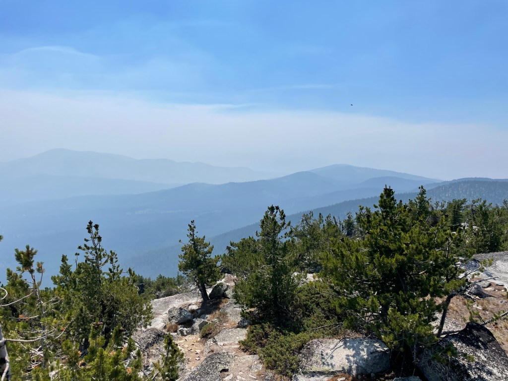 As of this writing, the fire is ninety per cent contained. We have had several days of rain by now, and the smoke has mostly dissipated, though there are still pockets in the valleys that can be seen from the ridge tops. Fire season is not exactly over, but it is better. It is a relief to see clouds instead of smoke hovering over the mountains.