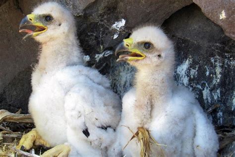 I reached the summit of the ridge, at that point probably less than a half mile from Corral Pass to complete the loop, when it dropped precipitously to a ledge about two meters below where I stood. There on the jagged rocks below me was the nest of a golden eagle with two downy chicks in its midst, their beaks pointed upward, chattering to one another, seemingly oblivious to my presence. I immediately looked up to see whether Mama Eagle was on her way back home any time soon. Not seeing any sign of her, I dropped to my belly, hung my head over the edge, and watched the eagle chicks. My heart was racing. I was only a few feet away from them. They were beige in color, unlike the photograph above, and about the size of small hens.