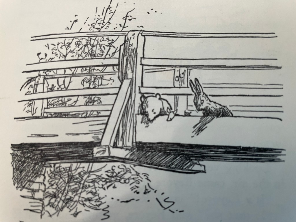 Never heard of Poohsticks? That is probably because you never read Winnie-the-Pooh as a child, or better yet, had it read to you or read it to your own children. I am fortunate to have had both of those tender moments in my life, and the book that I cherish has an inscription inside the front cover written to my mother in fountain pen and dated 1936. The illustration above is from that book, and the original copyright is 1928. Here I am obviously not referring to the Disney version of these celebrated childrens’ stories but the real thing, the one I hold in my hand right now.